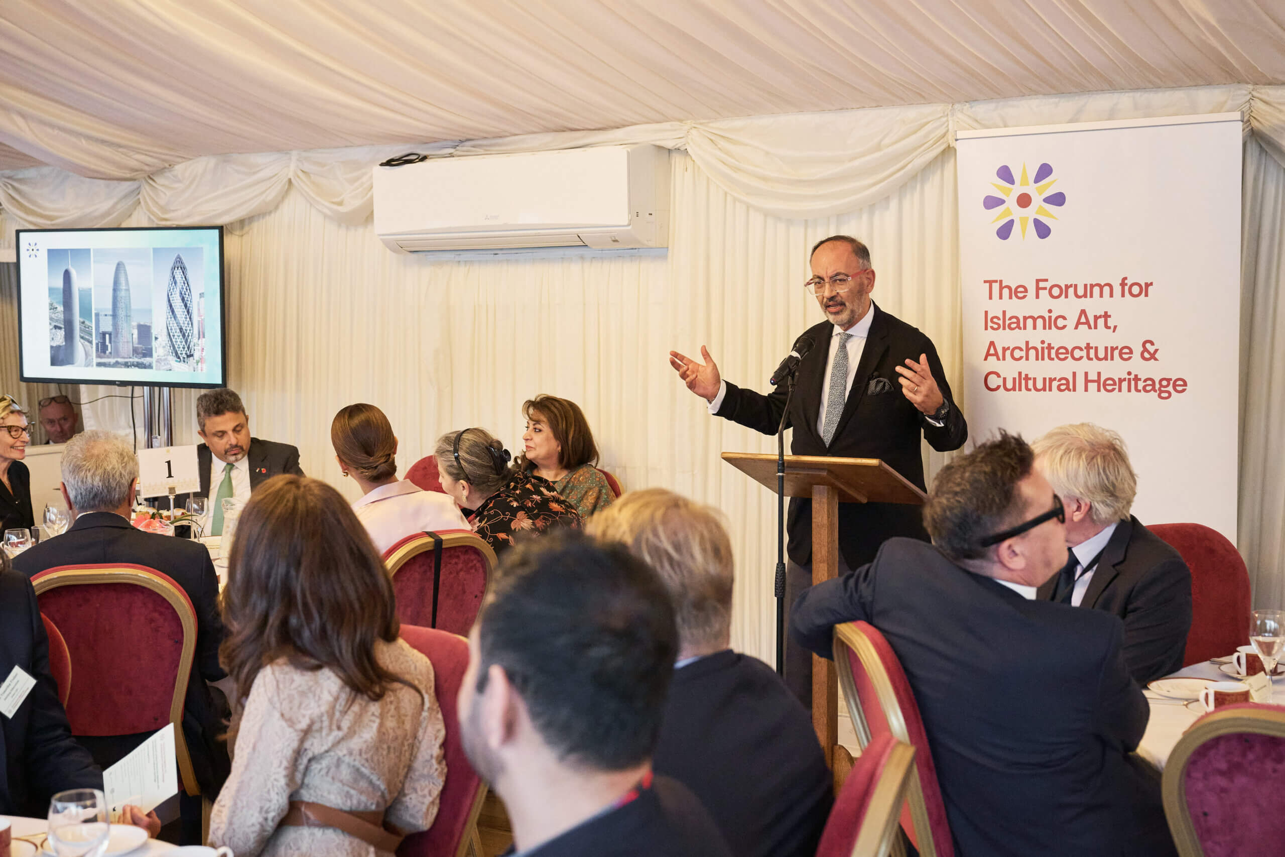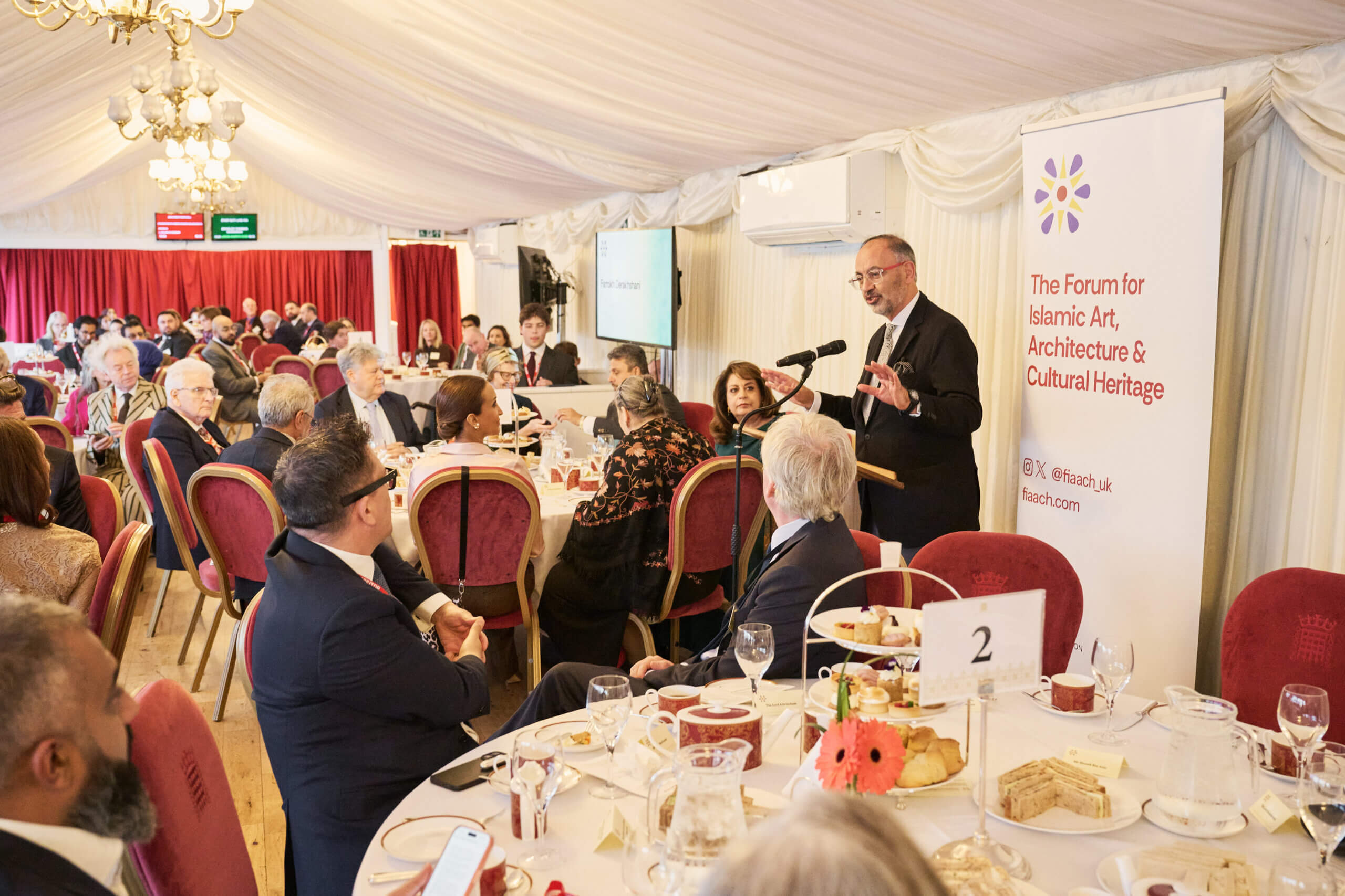 The launch event welcomed more than 110 guests, including over two dozen Members of the House of Lords, ambassadors from across Europe, the Middle East, and beyond, as well as leading figures from the fields of architecture, design, and cultural heritage. Speakers included Dr. Noorah Al Gailani (British Museum), Farrokh Derakhshani (Director of the Aga Khan Award for Architecture), and Jila Peacock (Glasgow-based painter and printmaker).